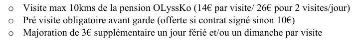 Découvrez nos tarifs pour la garde d'animaux, le toilettage et l'éducation à La maison des animaux- Au bonheur d'OLyssKo. Consultez la liste de nos services et produits ci-dessous.